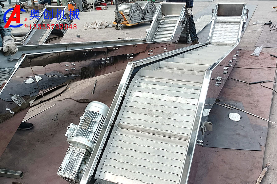 鏈板輸送機 鏈板輸送機是一種以標準鏈板為承載面,由馬達減速機為動力傳動的傳送裝置。鏈板式輸送機由動力裝置(電機)...